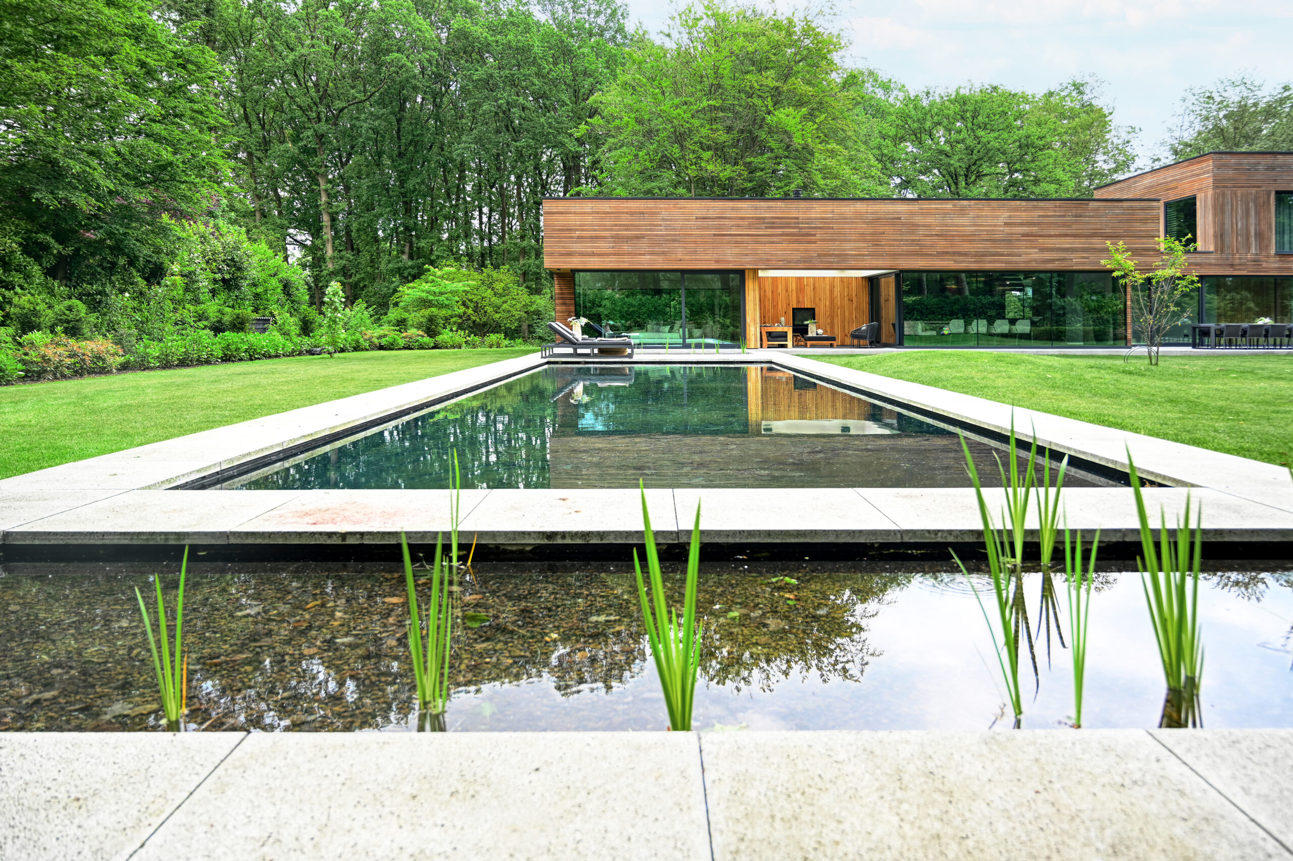 Er is veel energie gestoken in het ontwerp van ons huis. Een blauw chloorzwembad zou er totaal niet bij passen.