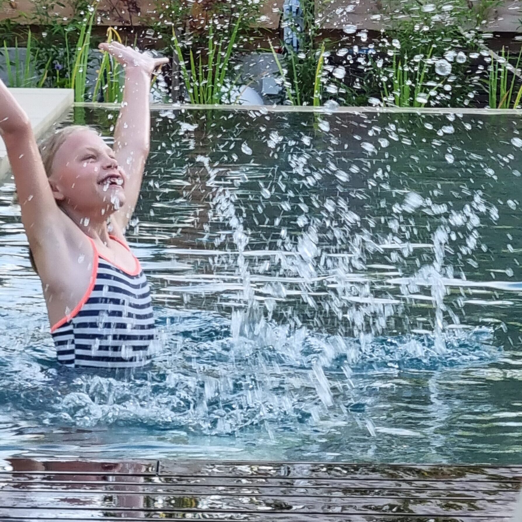 Geen rode ogen bij de kids. Ook niet na uren aan een stuk plezier in het zwembad.